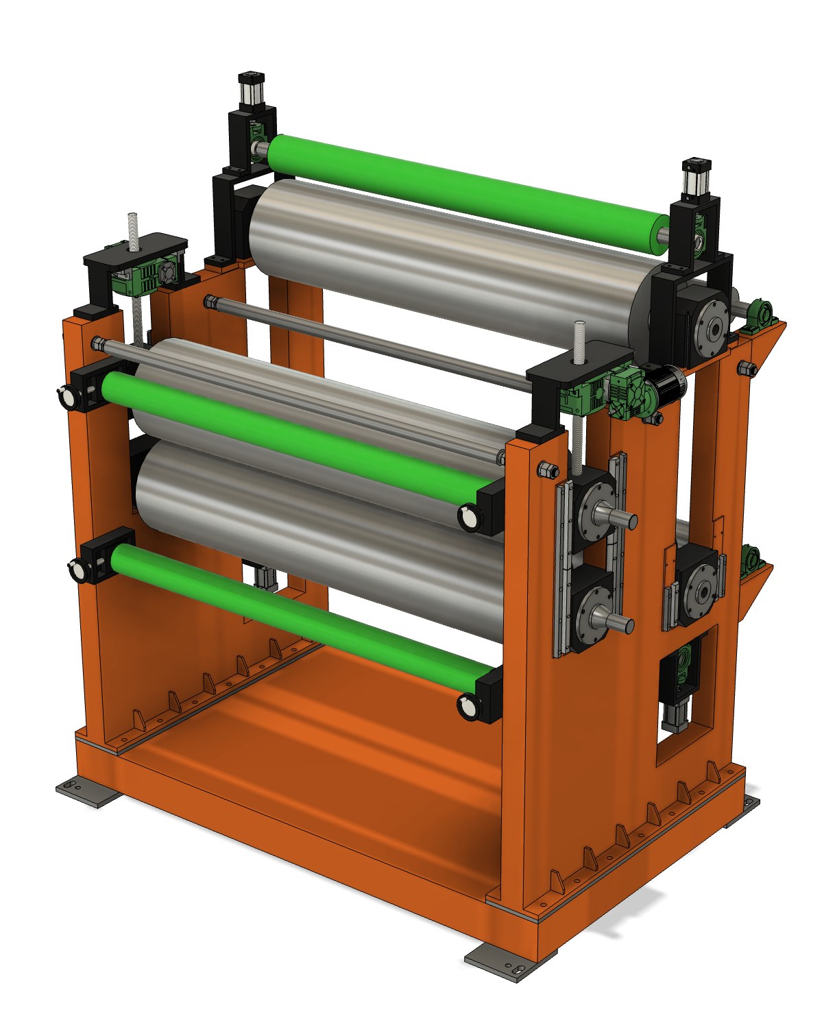 Use 2 pcs of Ф160MM mirror rollers as fixed roller, meanwhile use 3 pcs of Ф160MM mirror rollers as adjustable roller, can adjust vertically. The function of it is to make the ACP even.We may take 20MM thick Acrylic panel, so that workers can view the position of adjustable rollers. The traditional way is covered by a 4MM steel panel, workers often run into trouble somehow when they are not able to see the position.