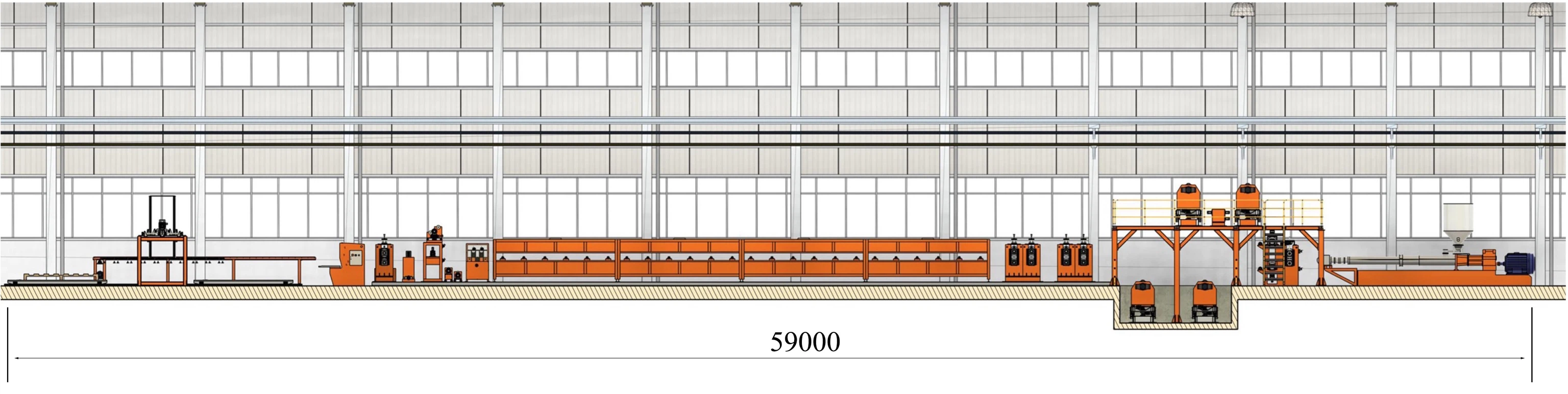Use the new type of extruder, the whole line speed can reach at 5.31M/min when making 4MM*1600MM ACP. The line speed increased by 62.5% compared with the 75 Model extruder.The main motor is 250KW SIEMENS motor.