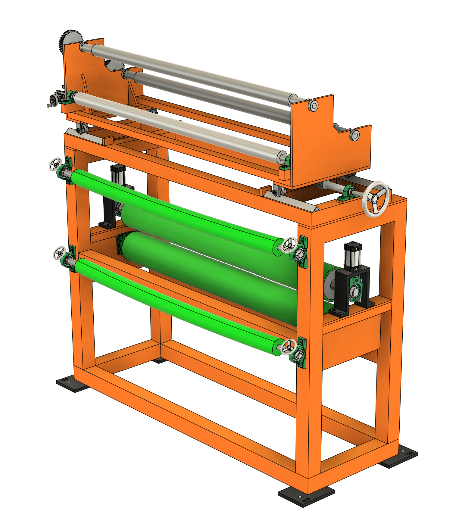 This machine is used to provide traction when unreeling the A-Core material. Then there is no need to pull the A-Core through a person.Using 2 rubber rollers(150MM) and 1 0.75kw motor.