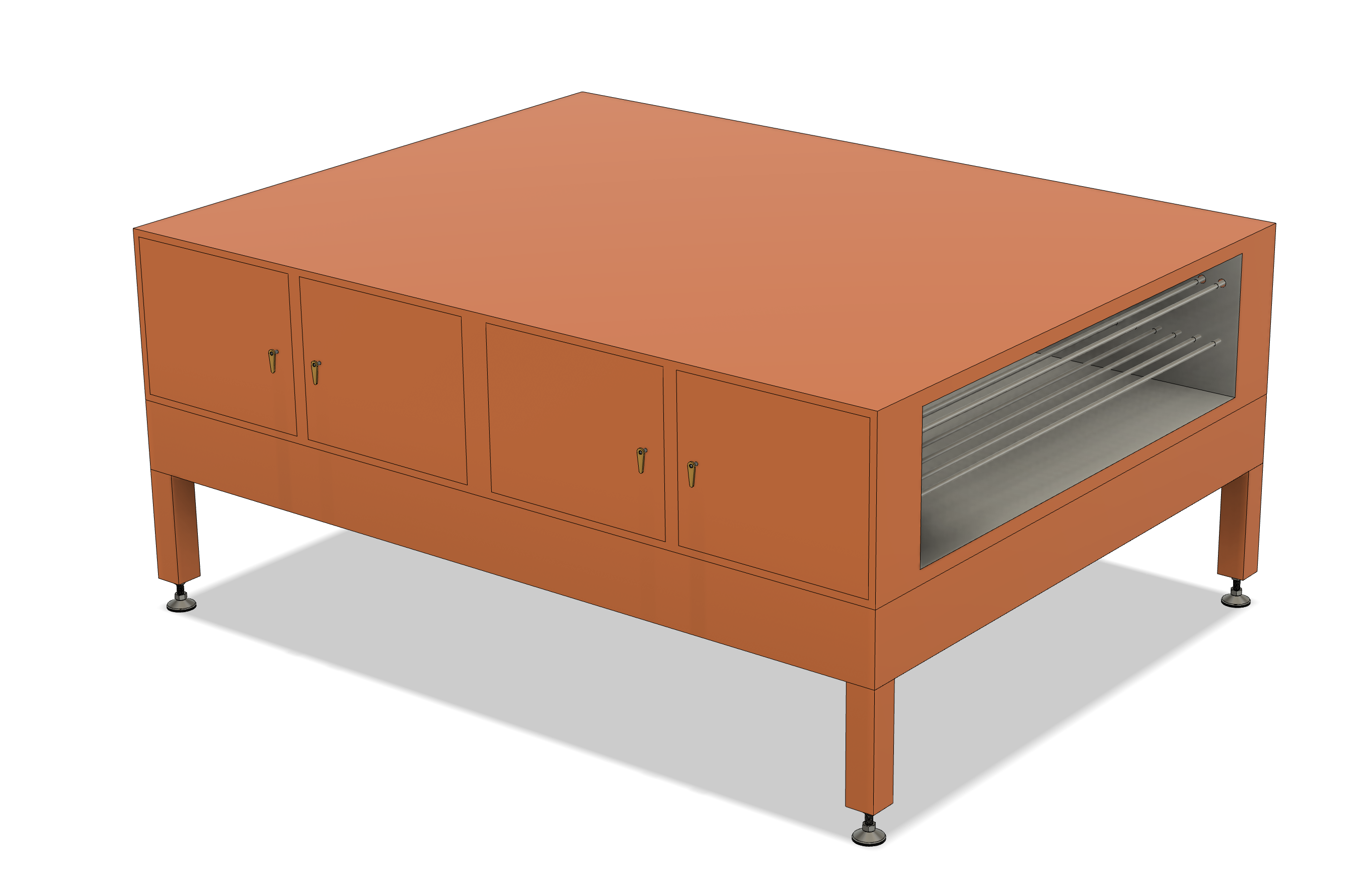 This Heating oven is used to raise the temperature of A-Core then reach the requirement of lamination. Usually raise the surface temperature to 180~200 Celsius Degree before lamination.The Heating Power is 80KW by electricity.The length is 3 meters.